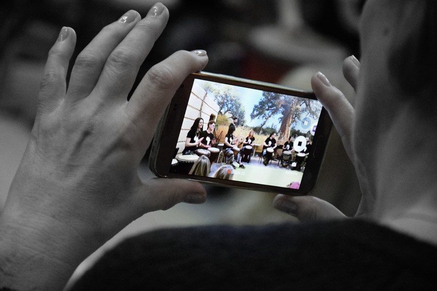 Zdjęcie wykonane podczas warsztatów gry na bębnach, zorganizowanych w Muzeum Narodowym w Szczecinie w ramach Ogólnopolskich Dni Djembe.